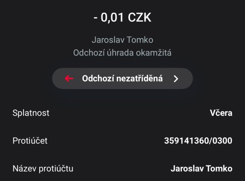 Poslat zprávupřidal/a skutečné jméno majitele účtu: Jaroslav Tomko k bankovnímu účtu: 359141360/0300