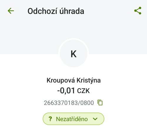 Poslat zprávupřidal/a skutečné jméno majitele účtu: Kristýna Kroupová k bankovnímu účtu: 2663370183/0800