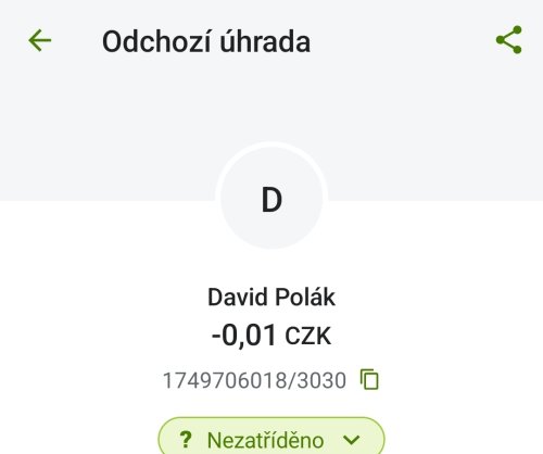 Poslat zprávupřidal/a skutečné jméno majitele účtu: David Polák k bankovnímu účtu: 1749706018/3030