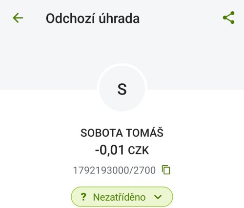 Poslat zprávupřidal/a skutečné jméno majitele účtu: Tomáš Sobota k bankovnímu účtu: 1792193000/2700