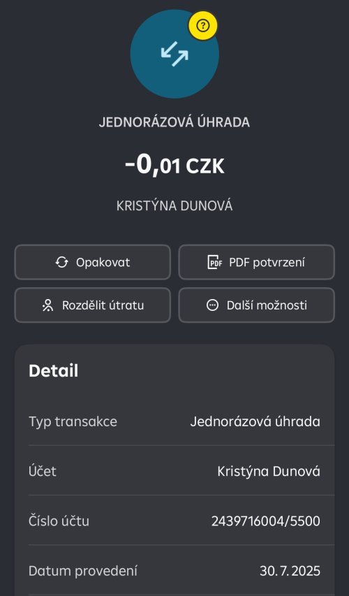 Poslat zprávupřidal/a skutečné jméno majitele účtu: Kristýna Dunová k bankovnímu účtu: 2439716004/5500