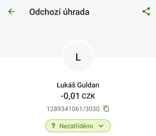 Poslat zprávupřidal/a skutečné jméno majitele účtu: Lukáš Guldan k bankovnímu účtu: 1289341061/3030