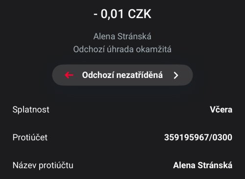 Poslat zprávupřidal/a skutečné jméno majitele účtu: Alena Stránská k bankovnímu účtu: 359195967/0300