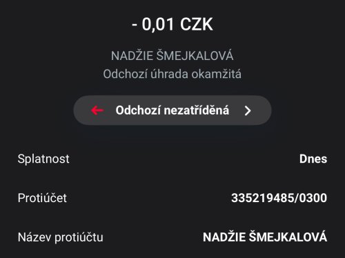 Poslat zprávupřidal/a skutečné jméno majitele účtu: Nadžie Šmejkalová k bankovnímu účtu: 335219485/0300