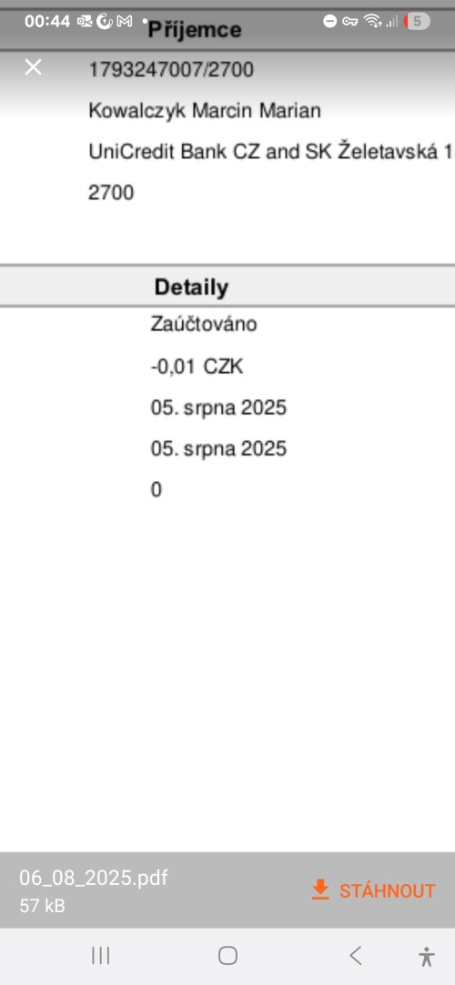 Poslat zprávupřidal/a skutečné jméno majitele účtu: Marian Martin Kowalczyk k bankovnímu účtu: 1793247007/2700