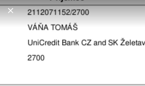 Poslat zprávupřidal/a skutečné jméno majitele účtu: Tomáš Váňa k bankovnímu účtu: 2112071152/2700