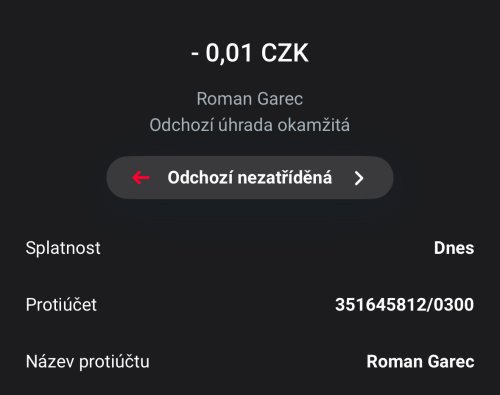 | 09. 08. 2025 | Online přes portál | 351645812/0300 | 3500,- | - |