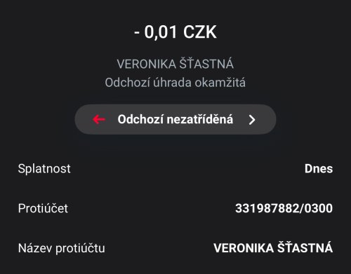 Poslat zprávupřidal/a skutečné jméno majitele účtu: Veronika Šťastná k bankovnímu účtu: 331987882/0300