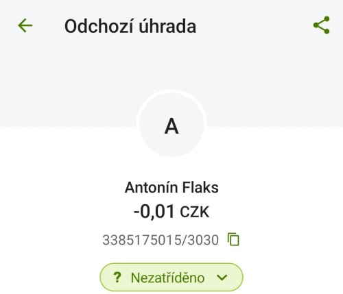 Poslat zprávupřidal/a skutečné jméno majitele účtu: Antonín Flaks k bankovnímu účtu: 3385175015/3030
