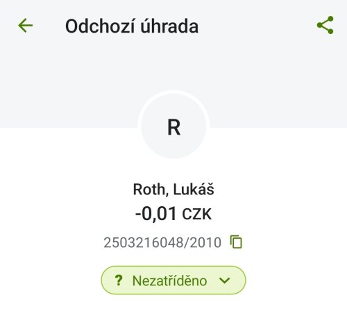 Poslat zprávupřidal/a skutečné jméno majitele účtu: Lukáš Roth k bankovnímu účtu: 2503216048/2010