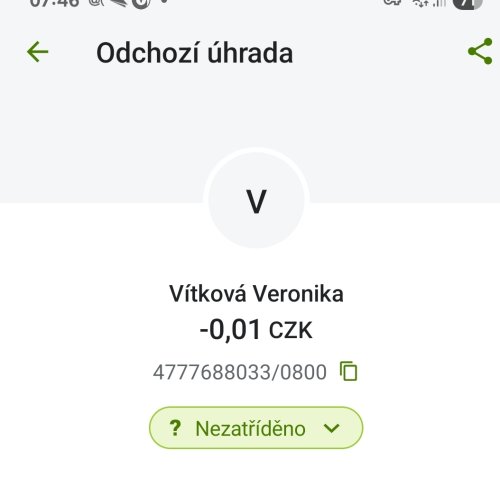 Poslat zprávupřidal/a skutečné jméno majitele účtu: Veronika Vítková k bankovnímu účtu: 4777688033/0800