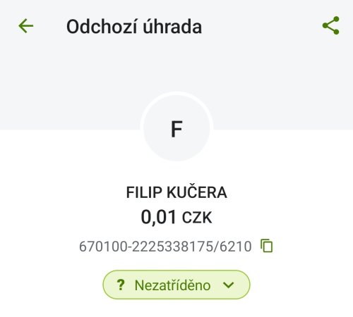 Poslat zprávupřidal/a skutečné jméno majitele účtu: Filip Kučera k bankovnímu účtu: 670100-2225338175/6210