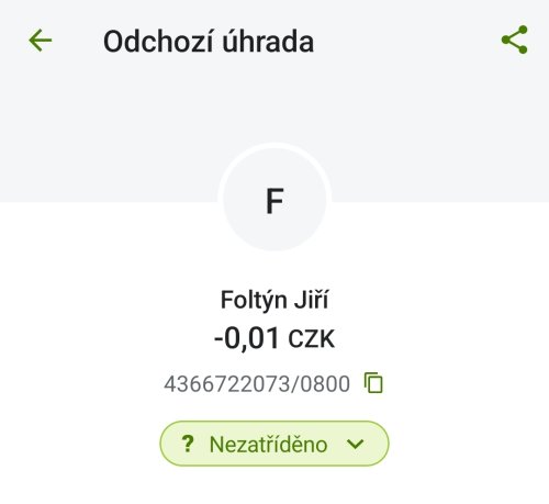 Poslat zprávupřidal/a skutečné jméno majitele účtu: Jiří Foltýn k bankovnímu účtu: 4366722073/0800