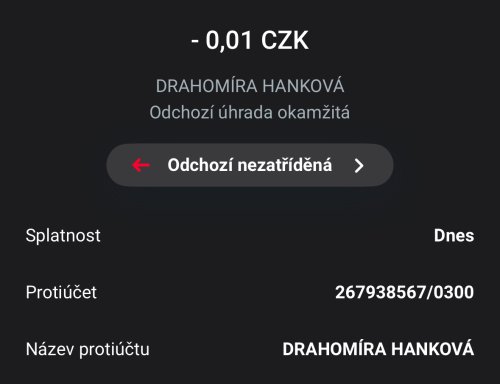 Poslat zprávupřidal/a skutečné jméno majitele účtu: Drahomíra Hanková k bankovnímu účtu: 267938567/0300
