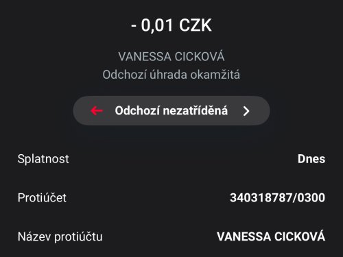 Poslat zprávupřidal/a skutečné jméno majitele účtu: Vanessa Cicková k bankovnímu účtu: 340318787/0300