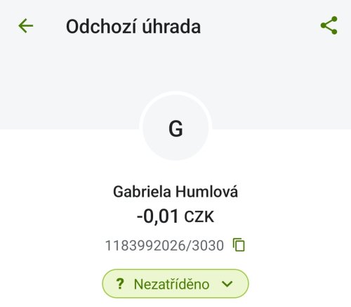 Poslat zprávupřidal/a skutečné jméno majitele účtu: Gabriela Humlová k bankovnímu účtu: 1183992026/3030