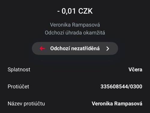 | 04. 06. 2025 | Online přes portál | 335608544/0300 | 500,- | - |