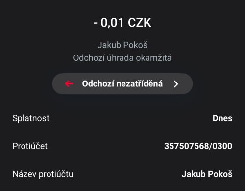Poslat zprávupřidal/a skutečné jméno majitele účtu: Jakub Pokoš k bankovnímu účtu: 357507568/0300