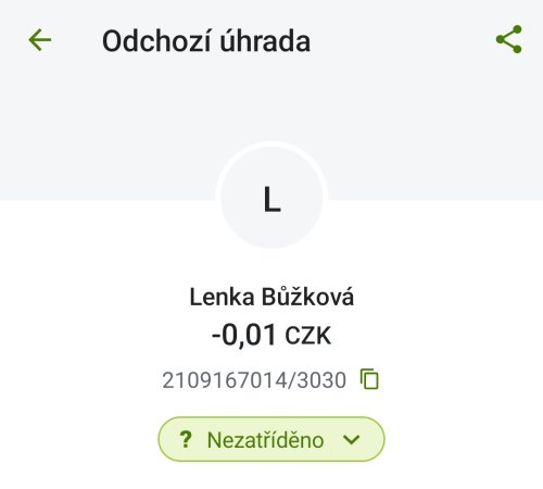 Poslat zprávupřidal/a skutečné jméno majitele účtu: Lenka Bůžková k bankovnímu účtu: 2109167014/3030