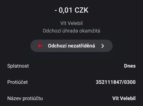 Poslat zprávupřidal/a skutečné jméno majitele účtu: Vít Velebil k bankovnímu účtu: 352111847/0300
