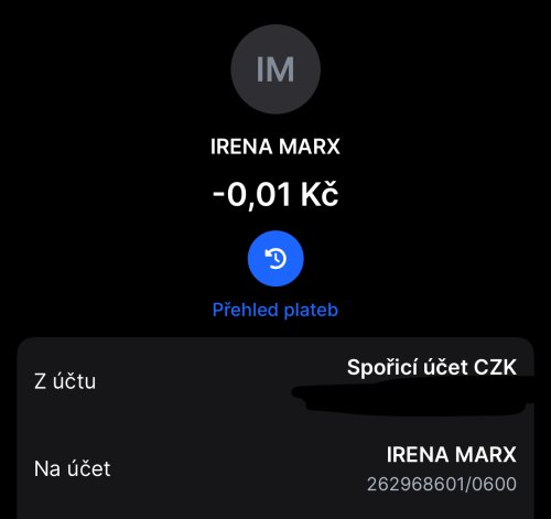 Poslat zprávupřidal/a skutečné jméno majitele účtu: Irena Marx k bankovnímu účtu: 262968601/0600