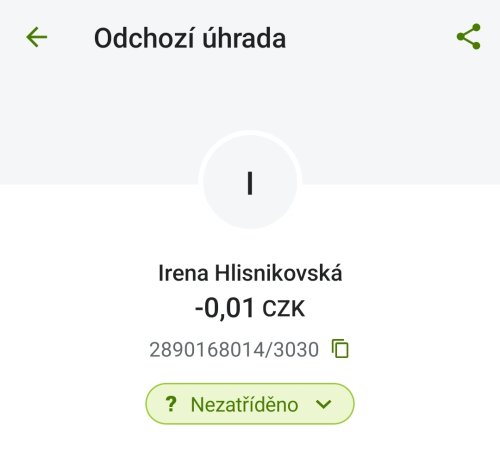 Poslat zprávupřidal/a skutečné jméno majitele účtu: Irena Hlisnikovská k bankovnímu účtu: 2890168014/3030