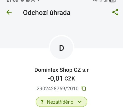 Poslat zprávupřidal/a skutečné jméno majitele účtu: Domintex Shop CZ s.r.o. k bankovnímu účtu: 2902428769/2010