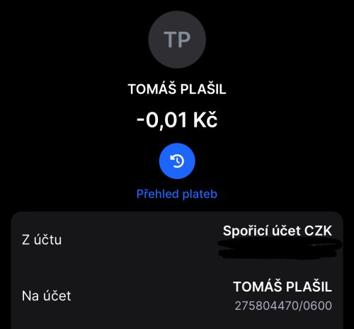 Poslat zprávupřidal/a skutečné jméno majitele účtu: Tomáš Plašil k bankovnímu účtu: 275804470/0600