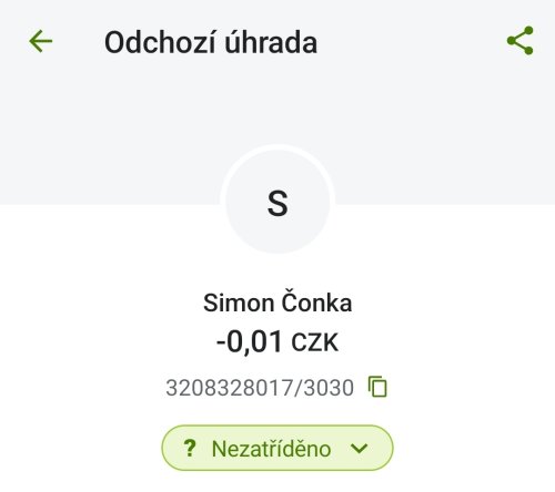 Poslat zprávupřidal/a skutečné jméno majitele účtu: Simon Čonka k bankovnímu účtu: 3208328017/3030