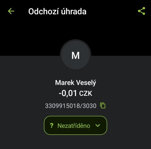 Poslat zprávupřidal/a skutečné jméno majitele účtu: Marek Veselý k bankovnímu účtu: 3309915018/3030