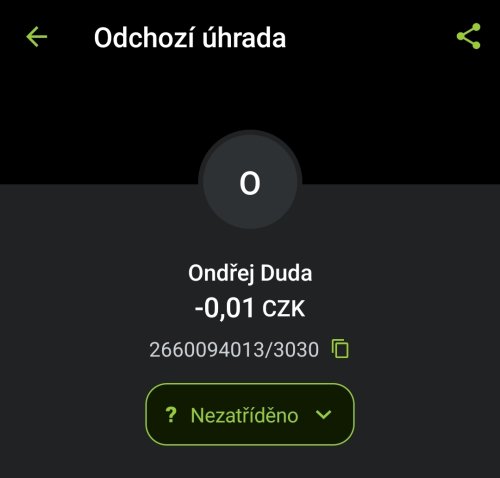 Poslat zprávupřidal/a skutečné jméno majitele účtu: Ondřej Duda k bankovnímu účtu: 2660094013/3030