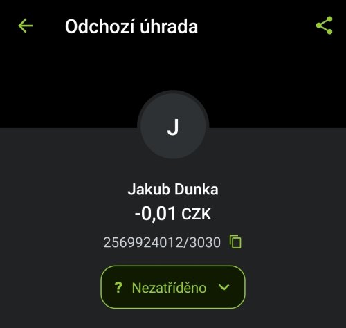 Poslat zprávupřidal/a skutečné jméno majitele účtu: Jakub Dunka k bankovnímu účtu: 2569924012/3030
