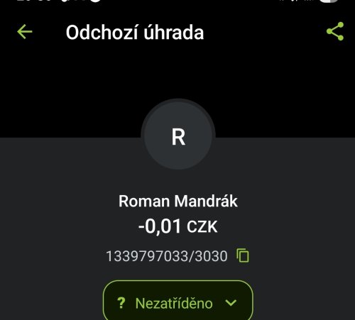 Poslat zprávupřidal/a skutečné jméno majitele účtu: Roman Mandrák k bankovnímu účtu: 1339797033/3030