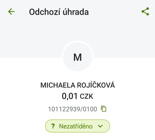 Poslat zprávupřidal/a skutečné jméno majitele účtu: Michaela Rojíčková k bankovnímu účtu: 353356352/0300