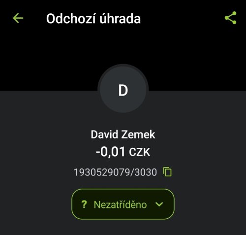 Poslat zprávupřidal/a skutečné jméno majitele účtu: David Zemek k bankovnímu účtu: 1930529079/3030