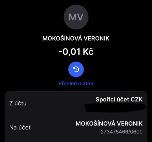 Poslat zprávupřidal/a skutečné jméno majitele účtu: Veronika Mokošínová k bankovnímu účtu: 273475466/0600