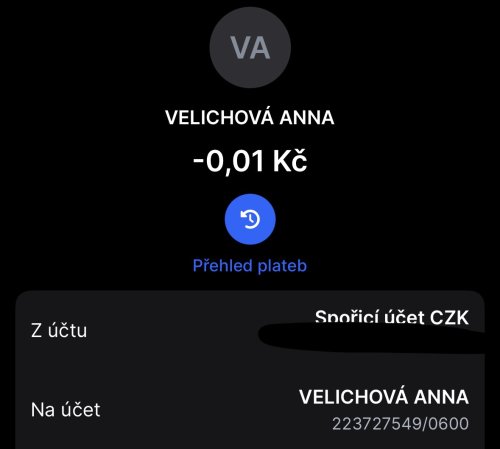 Poslat zprávupřidal/a skutečné jméno majitele účtu: Anna Velichová k bankovnímu účtu: 223727549/0600
