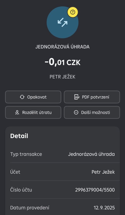 Poslat zprávupřidal/a skutečné jméno majitele účtu: Petr Ježek k bankovnímu účtu: 2996379004/5500