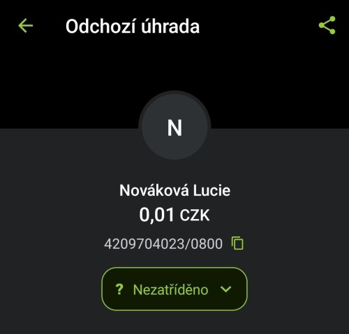 Poslat zprávupřidal/a skutečné jméno majitele účtu: Lucie Nováková k bankovnímu účtu: 4209704023/0800