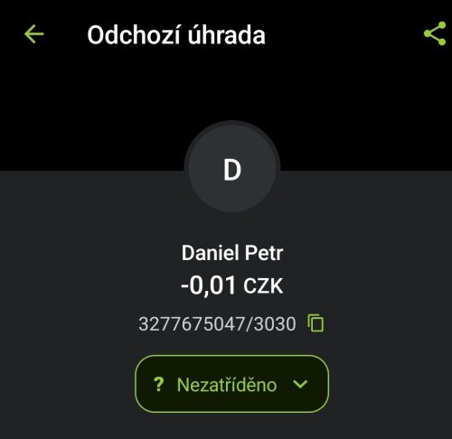 Poslat zprávupřidal/a skutečné jméno majitele účtu: Daniel Petr k bankovnímu účtu: 3277675047/3030