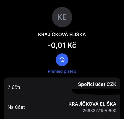 Poslat zprávupřidal/a skutečné jméno majitele účtu: Eliška Krajíčková k bankovnímu účtu: 269837719/0600