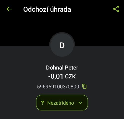 Poslat zprávupřidal/a skutečné jméno majitele účtu: Peter Dohnal k bankovnímu účtu: 5969591003/0800