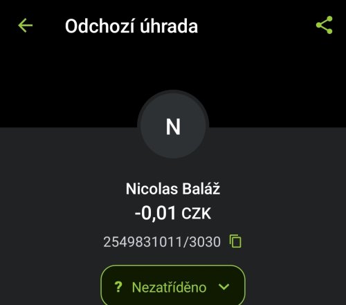 Poslat zprávupřidal/a skutečné jméno majitele účtu: Nicolas Baláž k bankovnímu účtu: 2549831011/3030