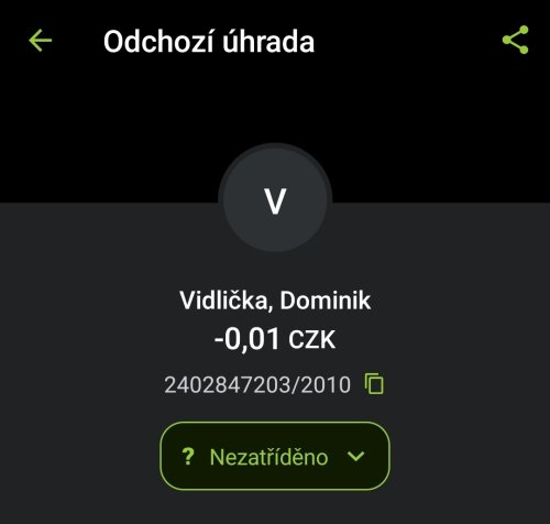 Poslat zprávupřidal/a skutečné jméno majitele účtu: Dominik Vidlička k bankovnímu účtu: 2402847203/2010