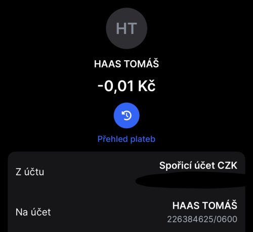 Poslat zprávupřidal/a skutečné jméno majitele účtu: Tomáš Haas k bankovnímu účtu: 226384625/0600