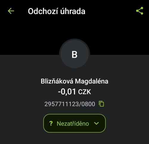 Poslat zprávupřidal/a skutečné jméno majitele účtu: Magdaléna Blizňáková k bankovnímu účtu: 2957711123/0800