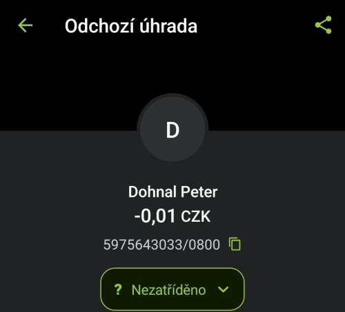 Poslat zprávupřidal/a skutečné jméno majitele účtu: Peter Dohnal k bankovnímu účtu: 5975643033/0800