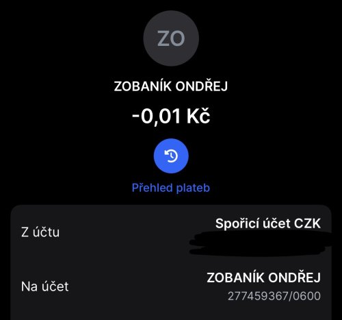 Poslat zprávupřidal/a skutečné jméno majitele účtu: Ondřej Zobaník k bankovnímu účtu: 277459367/0600