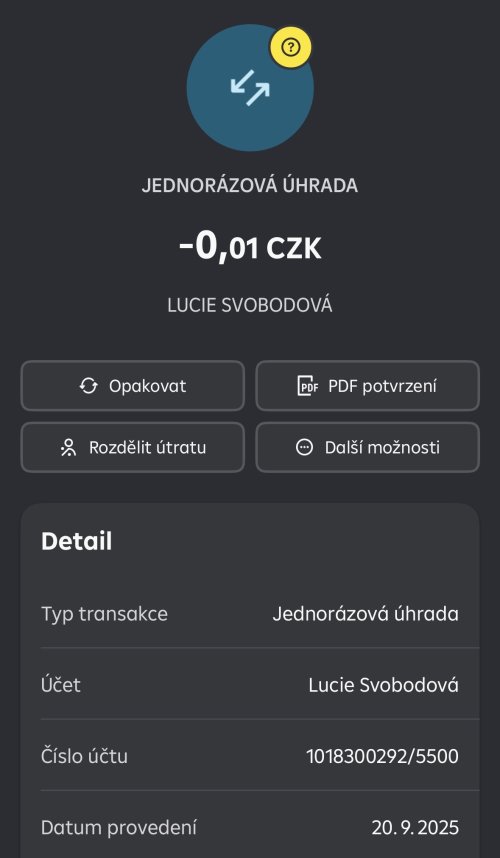 Poslat zprávupřidal/a skutečné jméno majitele účtu: Lucie Svobodová k bankovnímu účtu: 1018300292/5500