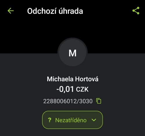 Poslat zprávupřidal/a skutečné jméno majitele účtu: Michaela Hortová k bankovnímu účtu: 2288006012/3030